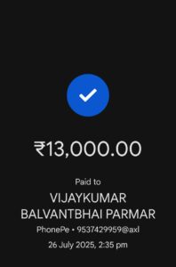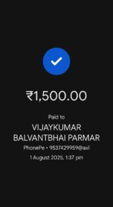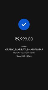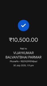 પીડિત વ્યક્તિ પાસેથી ઠગ ટોળકી દ્વારા લેવામાં આવેલા પૈસાની સ્કીન શોર્ટ
